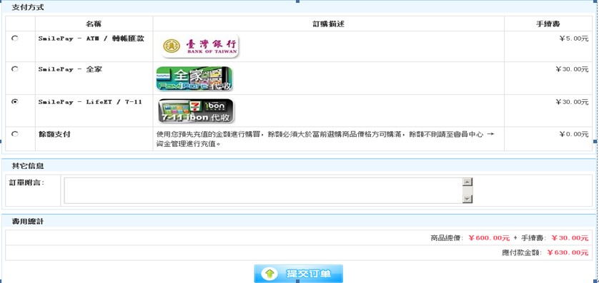 十、選擇後在下方會跳出應付款金額,確認金額後,按【提交訂單】送出。